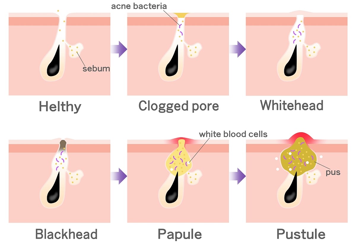 當粉刺遇到肌膚表面以皮脂為食物的「痤瘡桿菌」時,就會造成痤瘡桿菌大量增生,過度增生的痤瘡桿菌就會引免疫系統的發炎,這時就會產生痘痘,所以大家才會覺得粉刺多就容易長痘痘。