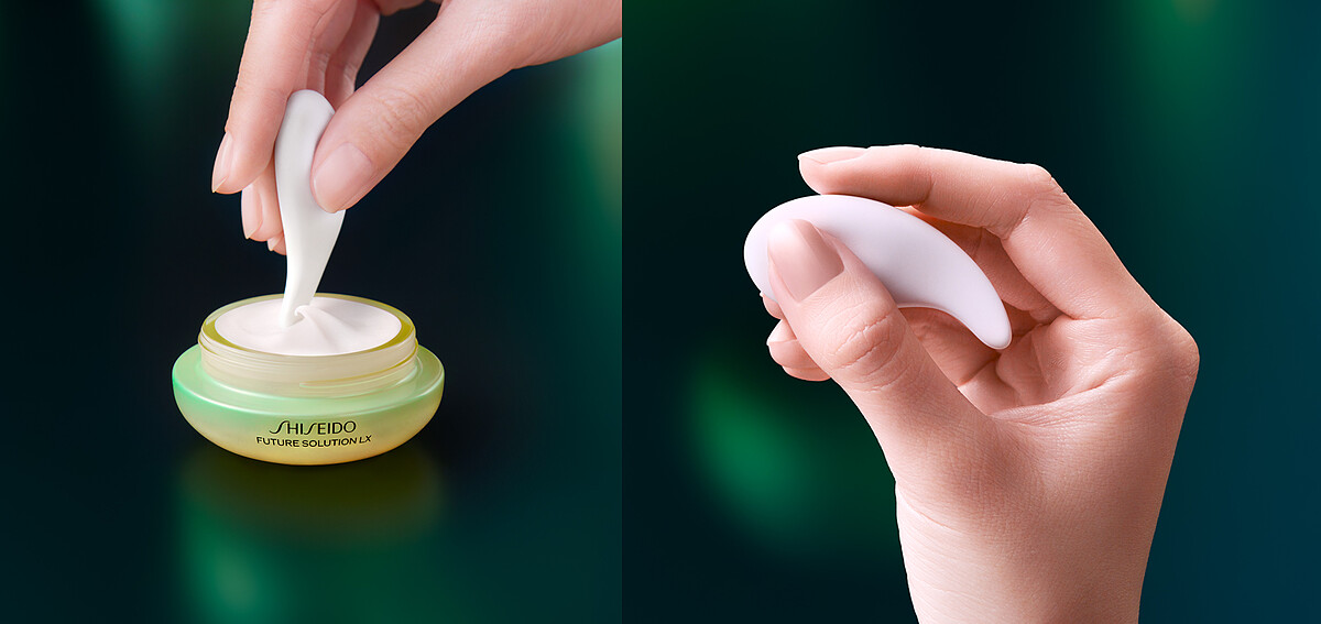 以日本古老珠寶「勾玉」為設計靈感,呈精準彎曲弧形,能舒服完美服貼每一寸眼周肌膚的高級陶瓷材質按摩器,沾取適量傳奇眼霜,即可沿著眼周與眉眼大範圍肌膚,帶來極其滑順流暢的按摩效果;更可用來按摩眼周穴位,給予眼周肌膚恰到好處的指壓保養力道,搭配資生堂獨家深度按摩手法,還能發揮越顯著的抗老功效,雙眼更加煥發彈潤光采!