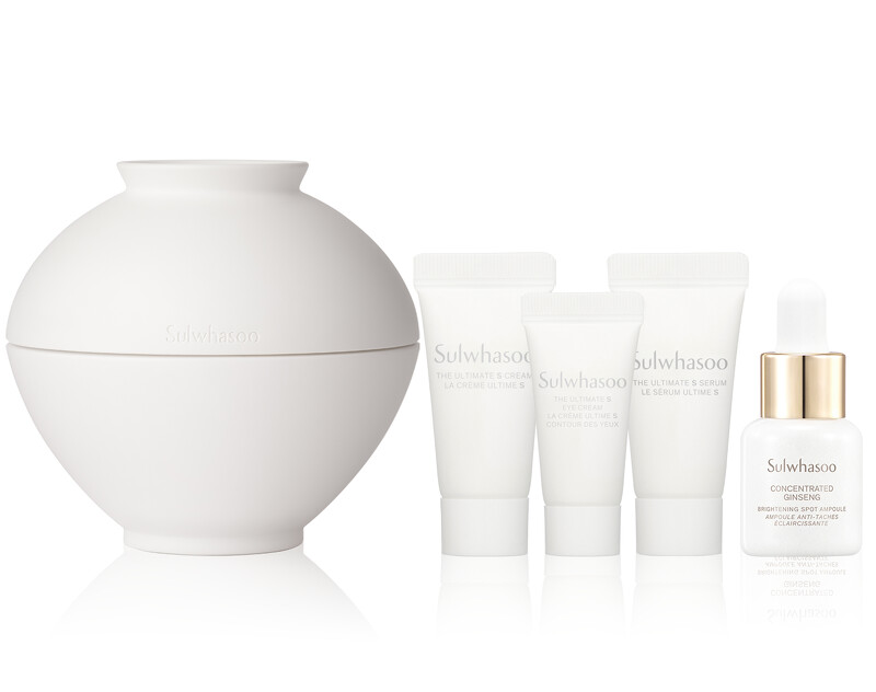 含:極致臻秀精華50ml+極致臻秀乳霜5ml+極致臻秀眼霜3ml+滋陰蔘光燦淡斑安瓶5g+潤燥養膚精華8ml,原價NT.16,699、臻選價NT.12,800。
