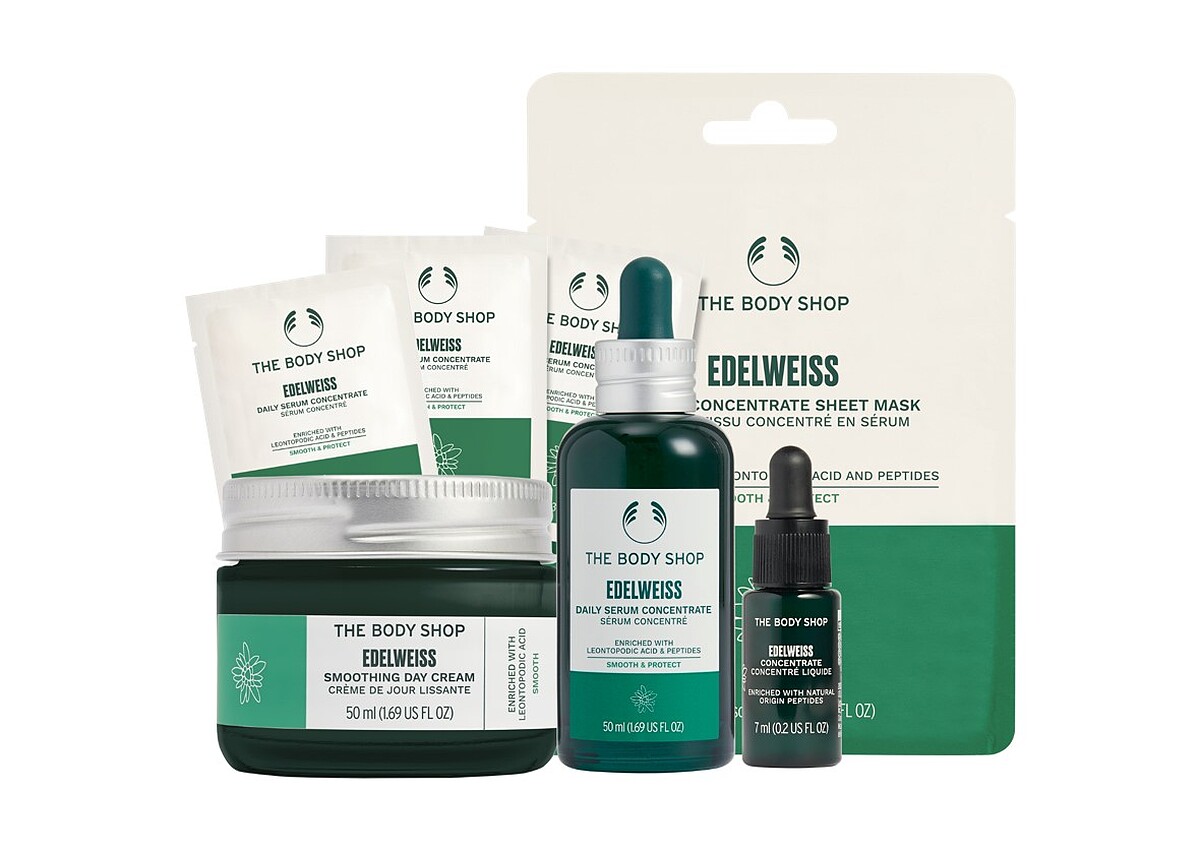 THE BODY SHOP研究發現肌膚80%常見傷害多來自環境因素,像是空氣髒污、紫外線、激烈氣候、冷氣房等,並尋覓到平時生長在極地環境的「雪絨花」,天生自帶極高的保護力與修護能力,還有比A醇還過人的抗氧化效果,添加在保養品中有效改善肌膚老化、乾燥、細紋等問題。雪絨花漾顏奇肌系列富含2倍有機雪絨花萃取,成分高達90%都是天然物,從精華、滋養霜、抗老霜、眼霜到凍齡面膜系列商品超完整,一次做到肌膚強韌、淡化細紋、飽滿澎潤、水嫩彈性、透亮光澤等美顏效果,用天然抗老超有感也最安心!