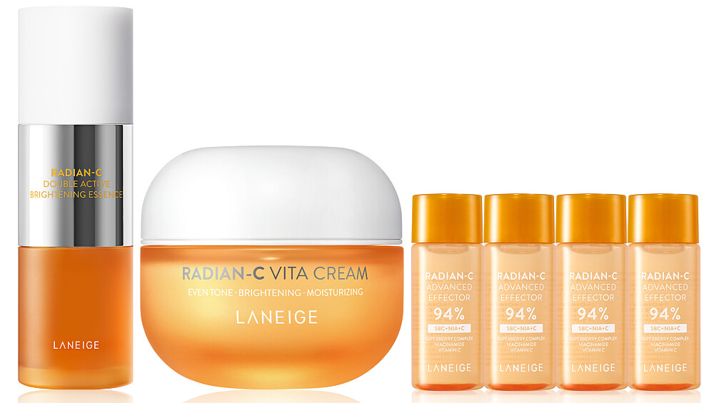 內容:維他命C淨膚煥白雙精萃30g(正貨)、維他命C淨膚霜50ml(正貨)、維他命C淨膚煥顏精露 15ml*4。