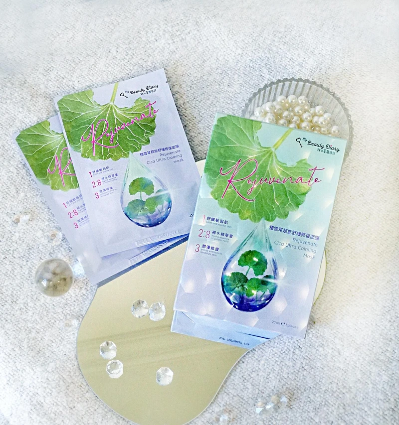 美麗日記明星成分「雙重積雪草」由積雪草植萃複合物 X 高純度羥基積雪草苷提煉出極佳的舒緩功效,持續給予肌膚保濕補水,舒緩乾燥粗糙肌,敷完感受柔軟水潤嫩肌,手一摸有夠咕溜,超能修復實在有夠給力!