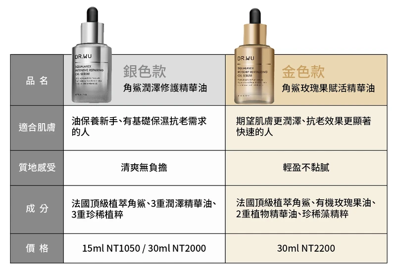 經典銀色款角鯊潤澤修復精華油也好用!我該怎麼選!