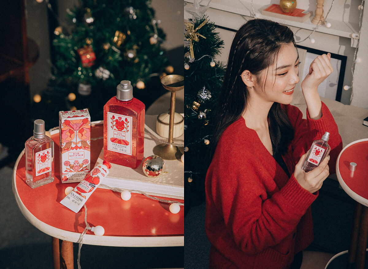喜愛甜酷風格的李柔跟大家一樣最喜歡年末濃濃的聖誕氣氛,歐舒丹的節慶系列不只質感香氣夠療癒,高顏值包裝設計時髦有型,拿來當交換禮物絕對送到心坎裡。李柔先是大讚「杏仁橄欖花限量系列」的獨特調香,從前調柑橘香氣到中調花香及杏仁香氣,到最後的木質調收尾,彷彿象徵著一整年從開始到結束的多采多姿。迫不及待開箱使用的她忍不住大推「杏仁橄欖花沐浴油」洗完的極致滑嫩感,雖是沐浴油卻遇水轉化成清爽水乳質地,搓揉後產生豐盈細緻泡泡,因含有甜杏仁油、橄欖果油及向日葵籽油成分,沐浴同時滋養柔嫩肌膚,身上還自帶細緻淡雅芳香,零死角煥發絲緞光澤感,宛如每天做完spa水嫩嫩般!