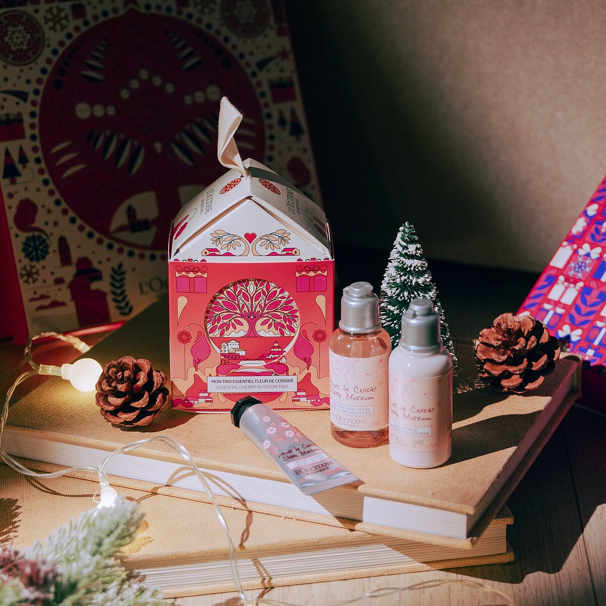 深受女孩喜愛的櫻花系列,清雅香氣與夢幻淡粉外型,絕對是必入手的口袋名單!組合特別搭配沐浴膠、美體乳及護手霜基礎保養,收進粉紅聖誕小屋裡攜帶有型,掛在聖誕樹上也是最可愛的驚喜!