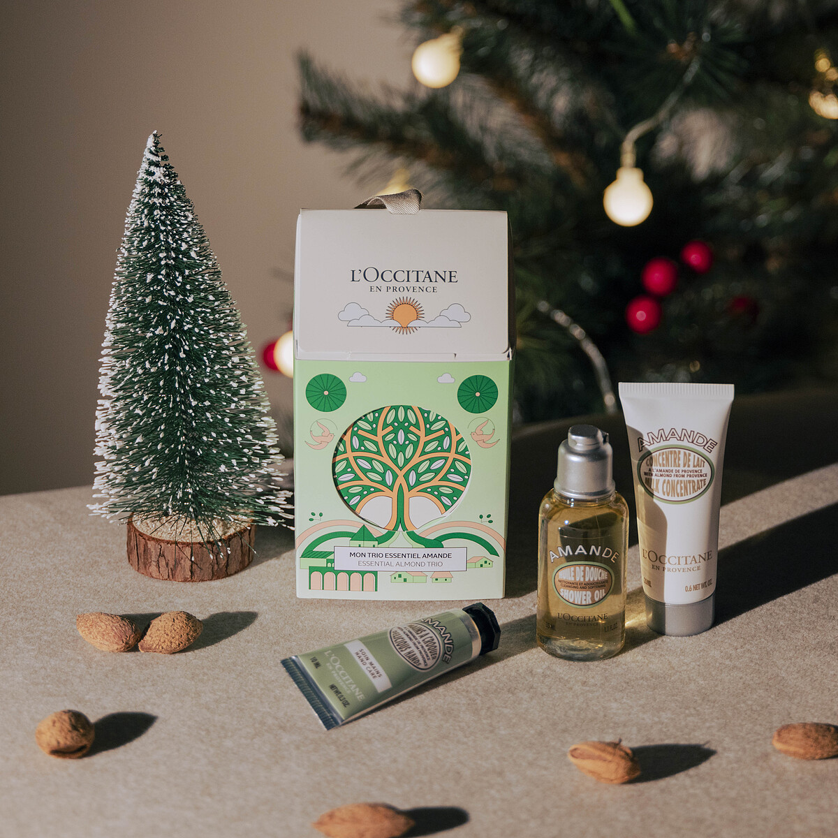 趁年末時刻好好檢視過去努力生活的時間,再用「杏仁橄欖花限量系列」給自己一個溫暖的安慰擁抱,從獨特香氣中獲得治癒,接收再重新出發的能量。橄欖樹在普羅旺斯被稱視為聖誕樹,它有著屹立千年的守護力量,當橄欖收穫時也是大家幸福團聚的時刻,具有世代流傳的經典傳統。以麝香及香草鋪陳的基調中,利用佛手柑、檸檬、苦橙等柑橘香調揉合橄欖花與杏花的清新,像新鮮的綠意在純潔雪白中淡雅點綴,更能在日常裡帶來釋放壓力的溫馨自在。