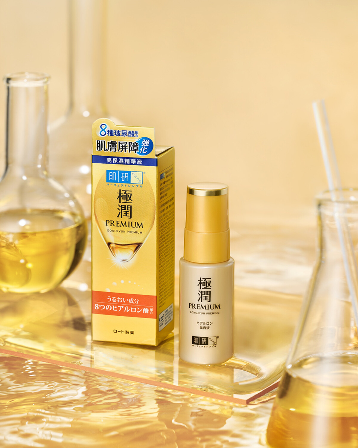 日本樂敦製藥鑽研眼部領域超過百年(所以樂敦眼藥水舉世聞名啊),從中發現原生於人體的玻尿酸,是肌膚最需要的溫和保濕成分,因此日本樂敦製藥抱持著追根究底和堅持品質的精神,長年深入了解玻尿酸特性、研究獨家技術,不斷追求更高效的玻尿酸種類與最佳組合,將玻尿酸在肌膚上的作用發揮到極致,一次次突破和進化後,誕生出獨家8重玻尿酸配方的「肌研極潤金緻高效保濕精華」。