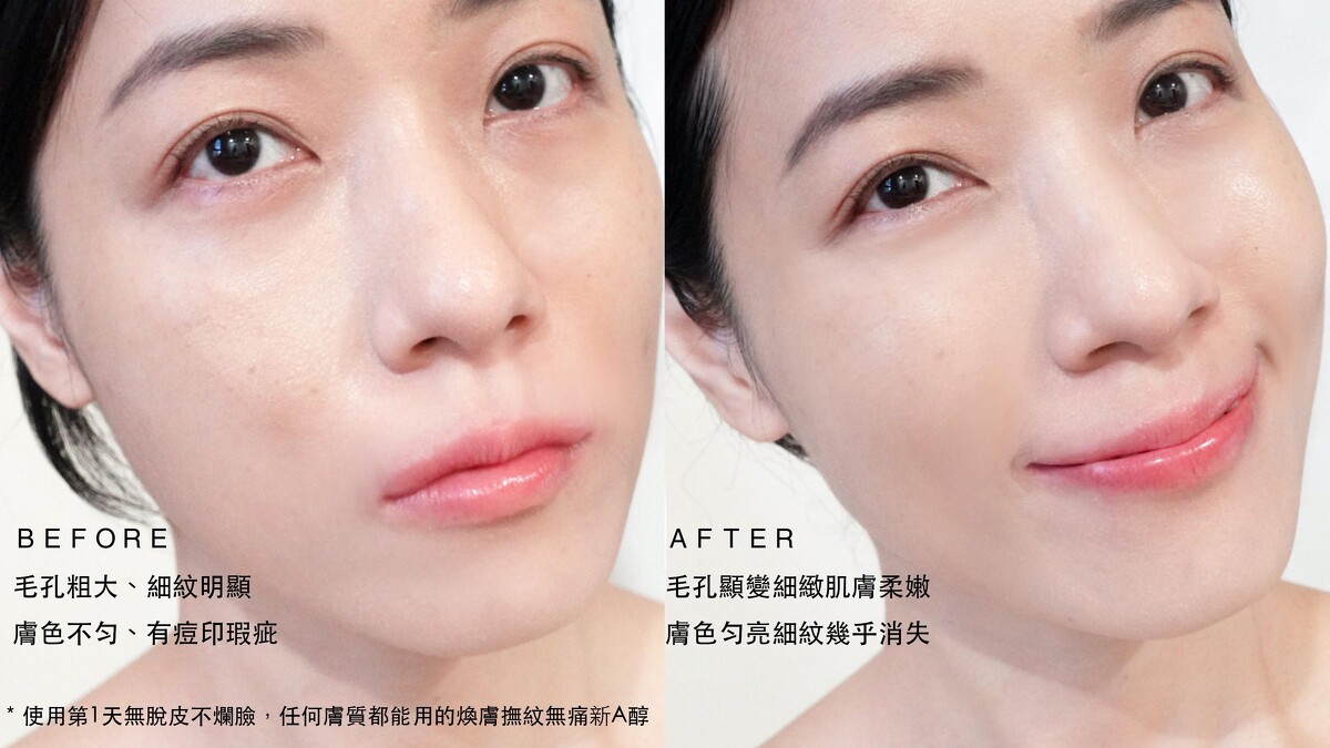 提到夯爆美妝界的全方位保養成分一定是「A醇」穩坐霸主之位,因為肌膚從20多歲就會開始減少膠原蛋白,接著產生紋路肌膚變粗糙。加上現代人生活作息不規律,熬夜追劇更加速肌膚各種老化狀況出現!A醇能幫助老廢角質更新代謝,讓肌膚更光滑細緻;也能促進膠原蛋白增生,讓肌膚從肌底變膨潤,達到撫紋效果,此外還能緊緻毛孔、淡化瑕疵…但M編也同時收到許多姐妹們詢問使用A醇時的「刺激性」,肌膚可能會經歷一段陣痛期,像是泛紅、脫皮、刺痛,敏感肌更不能輕易使用。