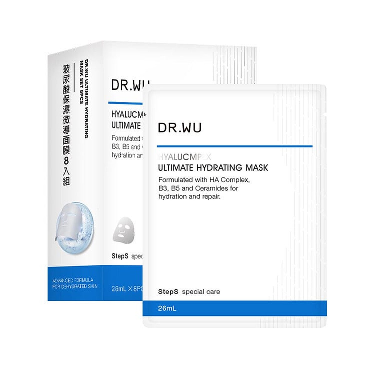 玻尿酸系列可說是DR.WU的明星系列,不僅基礎保養商品齊全,同系列亦推出保濕面膜,主打智慧型玻尿酸水循環科技,運用不同大小分子的玻尿酸各司其職,像是大分子玻尿酸抓水、小分子玻尿酸替肌底補水、微分子玻尿酸增加肌膚含水量並減少水分散失,並加入四重神經醯胺、維生素B3/B5,舒緩敏弱增強肌膚頻漲,敷一片=密集導入1.5瓶保濕精華,立即修復乾燥。