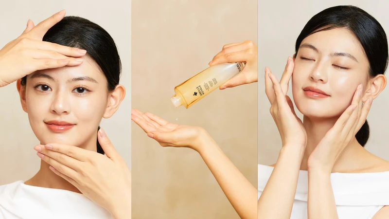清潔完肌膚後馬上進行皇家蜂王乳淨亮精華水「一搖二拋三拍拍」,先「搖」晃瓶身接著取適量塗抹「拋」光肌膚,再用手「拍拍」,AHAs天然複合酸可讓毛孔收斂抑制出油,當肌膚摸起來嫩嫩乾爽後,一滴小金瓶從兩頰毛孔拍拍處開始拍拍,接著再拍到全臉肌膚,最後濕敷淨亮精華水,連同小金瓶的動態黑蜂修護科技徹底深入肌底,把毛孔緊實修護力徹放到最大,保證一路到夏天肌膚不躁動,每天都有最無敵的臉。