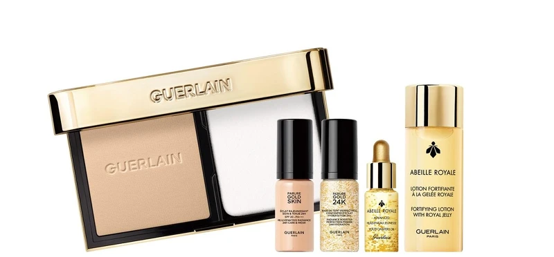 24K純金持妝無瑕輕潤粉餅0N(正品)、24K純金光透精華粉底5ml、24K純金保濕持妝凝露5ml、皇家蜂王乳蜜露40ml、皇家蜂王乳平衡油3G 5ml。《販售櫃點:台中三越/台中遠東/漢神百貨/南西三越/台茂/南紡/新竹大遠百/新竹巨城/忠孝SOGO/天母SOGO/天母三越/嬌蘭線上旗艦店3/26-4/16母親節預購會+第一波》