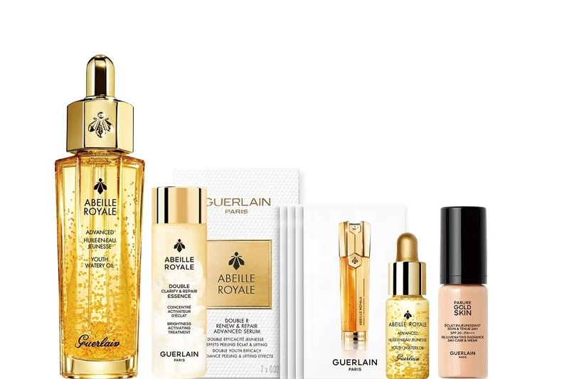 皇家蜂王乳平衡油3G 30ml(正品)、皇家蜂王乳淨亮精華水15ml、皇家蜂王乳平衡油3G 5ml、24K純金光透精華粉底5ml、皇家蜂王乳雙導精華 體驗禮(輕巧盒裝版)。《販售櫃點:台中遠東/新竹大遠百》