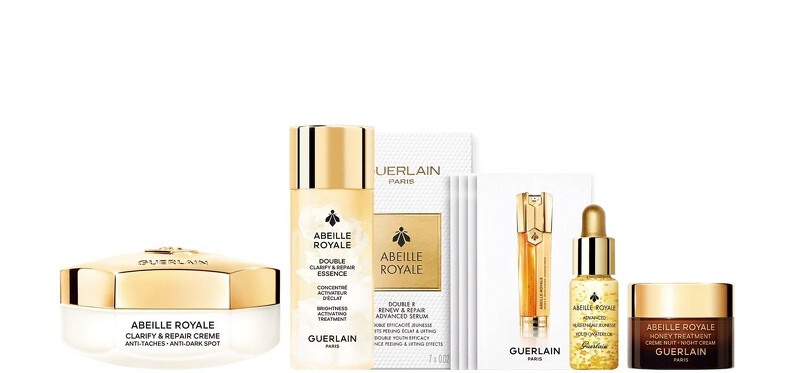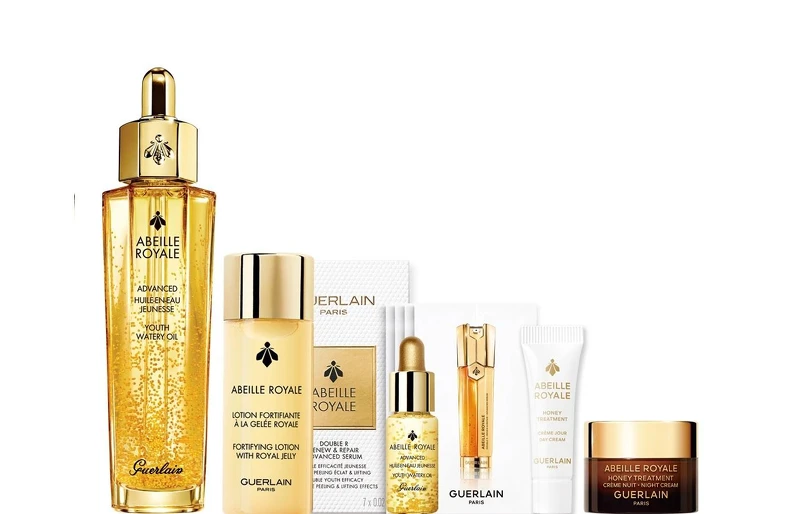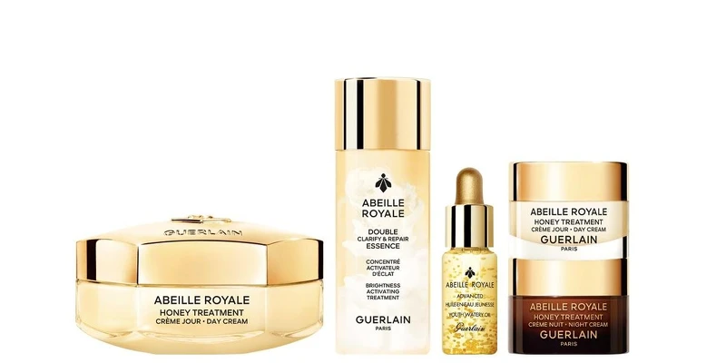 皇家蜂王乳淨亮修護蜜霜50ml(正品)、皇家蜂王乳淨亮精華水40ml、皇家蜂王乳平衡油3G 5ml、皇家蜂王乳蜂蜜修護黑霜7ml、皇家蜂王乳雙導精華 體驗禮(輕巧盒裝版)。《販售櫃點:中友百貨/台中遠東/廣三SOGO/嘉義遠東/耐斯廣場/漢神巨蛋/漢神百貨/高雄統一時代/高雄遠東/高雄SOGO/板橋大遠百/美麗華/遠東A13/台茂/南紡/中壢SOGO/新竹大遠百/新竹巨城/大葉高島屋/忠孝SOGO/敦南SOGO/復興SOGO/比漾廣場/嬌蘭線上旗艦店》