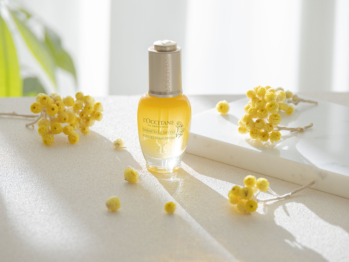 歐舒丹的「蠟菊賦活極萃油」的護膚功效更讓人喜愛,有高倍濃縮蠟菊精華油幫助抗氧抗炎、補水、修復等效果,高效活絡肌膚天然神經醯胺為肌膚防禦屏障提供額外保護,抵擋外在傷害;還富含獨家蠟菊超效醇萃成分,抗老撫紋媲美A醇,溫和不傷肌,能助膠原蛋白新生一臂之力,臉變得有澎潤緊實感,一次解決紋路、鬆弛、暗沉等老化問題,1滴讓喚回肌膚明亮光采,4週有感細緻變年輕。而香氣也是一大加分項目,喜愛草本香的林可彤大讚蠟菊賦活極萃油自帶優雅的植萃清香,給人一種超級舒壓的自在感,沒有人工調香味反而很高級有質感,塗抹上臉彷彿散發出身心療癒的魔力。