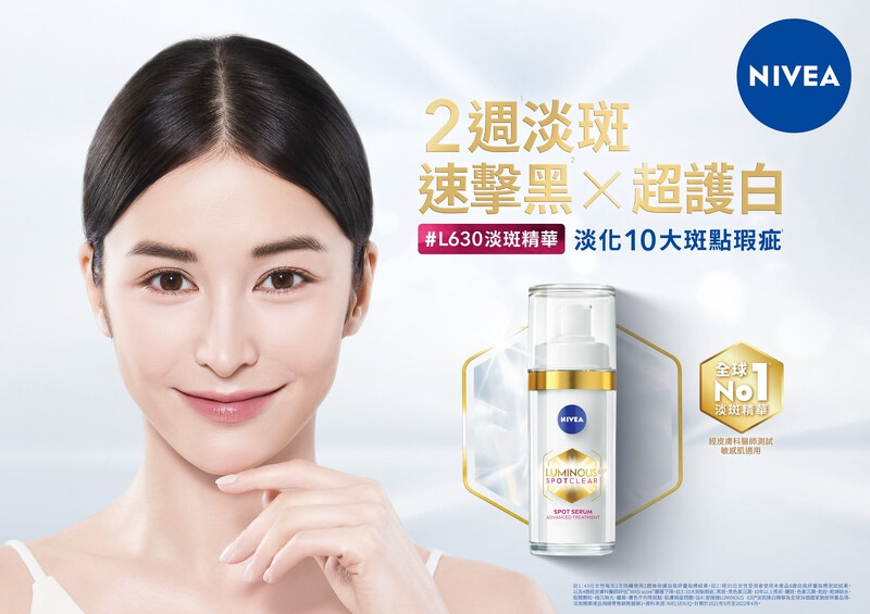美妝圈斷言最強淡斑巨星!NIVEA全新L630淡斑精華,衛福部核可專利美白成分L630連敏感肌都適用,淡斑狙黑實力強,將霸榜開架人氣No.1!
