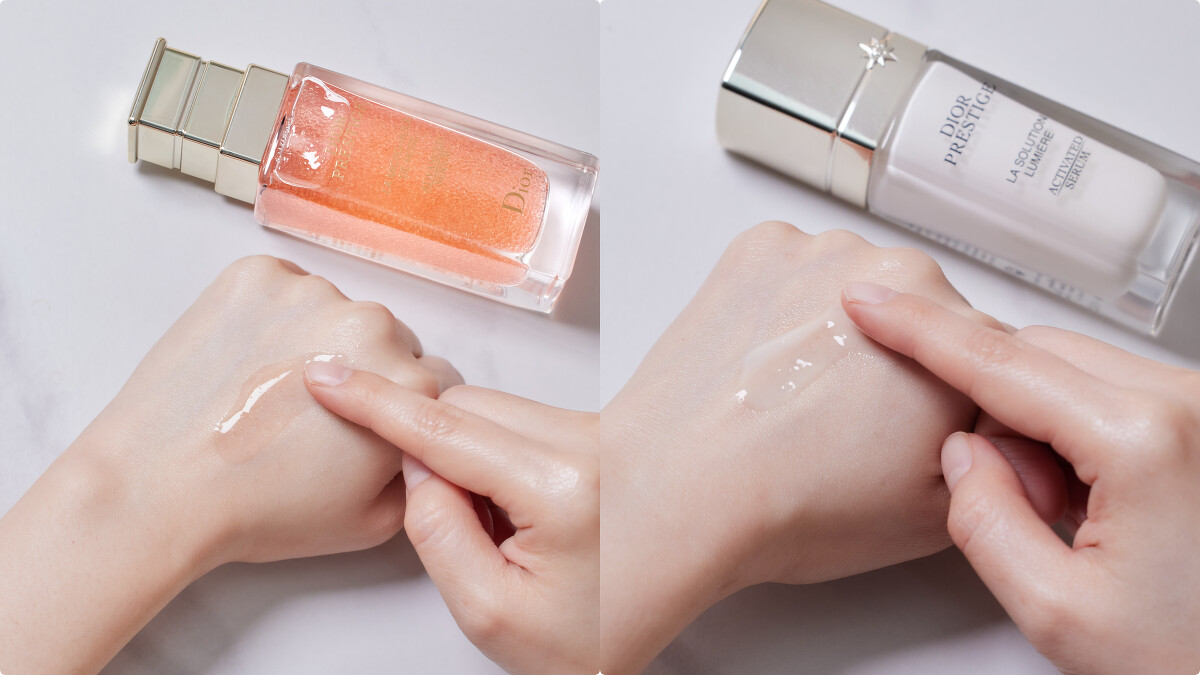 楊心怡醫師建議使用步驟可先以「迪奧精萃再生光燦淨白精華露」替肌膚溫和微煥膚,溫和雙微酸配方(AHA+PHA)促進角質更新代謝、恢復油水平衡,再搭配淨白賦活雙精華1+1「迪奧精萃再生玫瑰微導精露」+「迪奧精萃再生光燦淨白精華」幫肌膚打好底子、補足充沛的岡維拉玫瑰微營養素舒緩敏弱,並運用純淨白玫瑰極致淨白修護力逆轉肌齡重拾嫩白澎潤,徹底改善環境帶來的肌膚傷害,最後用「迪奧精萃再生光燦淨白賦活乳霜」緊緻修護、開啟光之大道,使肌膚細緻明亮,呈現拋光般的完美「奶蜜肌」。