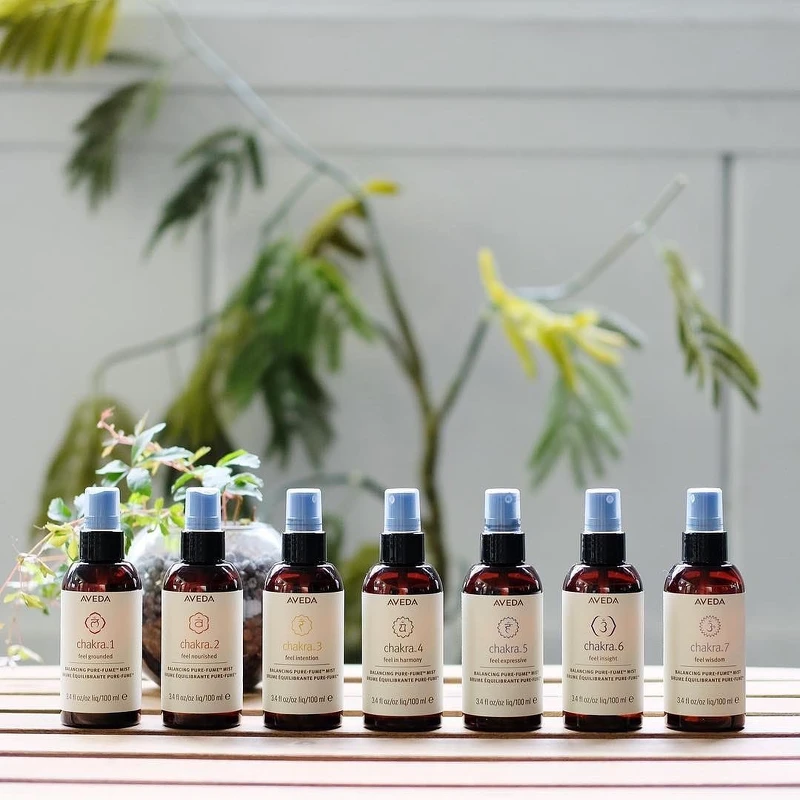 AVEDA經典的「chakra 平衡純香霧」一共有7款香氣,針對身體的七種平衡元素設計,能對應幫助平衡身體能量,穩定身心平衡。