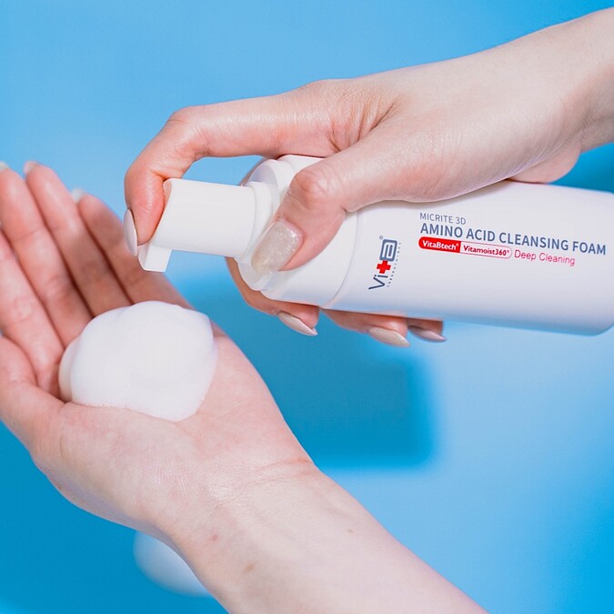 Swissvita薇佳2024年推出全新潔顏「全能胺基酸洗卸慕斯」,以經典明星成份-30%高濃度胺基酸結合多重溫和潔淨保濕成份,再透過細緻彈潤泡沫讓洗顏卸妝10秒完成。