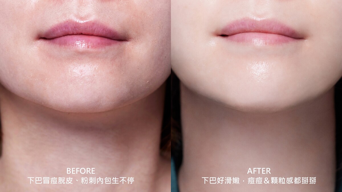 M編真心話告白,使用時剛好逢生理期,冒痘又脫皮、下巴粉刺內包生不停@@大概使用3天後,除了找回肌膚的高光時刻之外,連同膚色也更均勻透亮,最厲害的是下巴的痘痘&顆粒感都掰掰,從荔枝皮進化成水煮蛋~