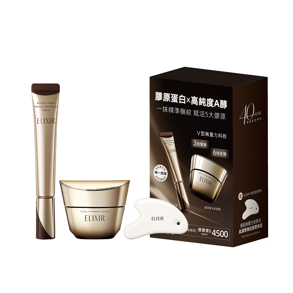 含 膠原緊V澎潤霜 + 膠原A醇超導抗皺精華22g + V型美容按摩板 (限量獨家)