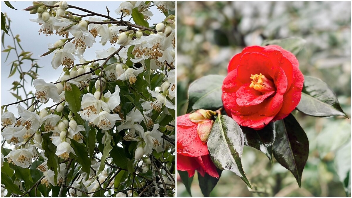 冬季尾聲,山茶花佈滿小巧鮮豔的花苞,看似嬌弱卻充滿力量,抗寒的祕密藏在細胞內。為了降低水的冰點,山茶花盡可能囤積水溶性物質,藉以提高細胞溶液濃度,對於冰霜的抵擋能力也因此大幅提升。