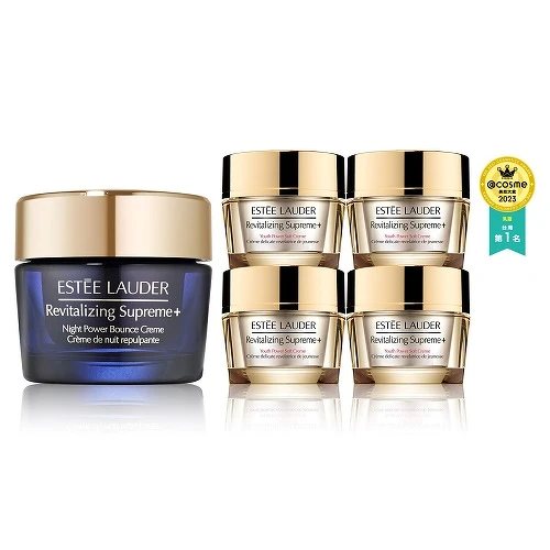 修護權威雅詩蘭黛以40年專業科研經驗,致力掌握肌膚夜間修護之關鍵要素,重磅鉅獻「NO.1膠原霜家族」的最新抗老新星「年輕無敵一夜修護膠原霜」,獨家「夜間膠原力雙修護8科技」,一次完美結合8種膠原蛋白配方,精準激升黃金3型膠原蛋白:第1型彈彈膠原*61、第3型寶寶膠原*2、第5型緊緊膠原*2,達到緊緻輪廓、維持彈性與柔嫩細緻膚觸,同時能防止膠原蛋白流失*3, 4小時回彈年輕肌膚澎彈緊嫩*4!一夜淡化細紋*5,雙頰澎澎回彈超有感!高達96%使用者表示:肌膚澎彈緊緻一夜有感*6