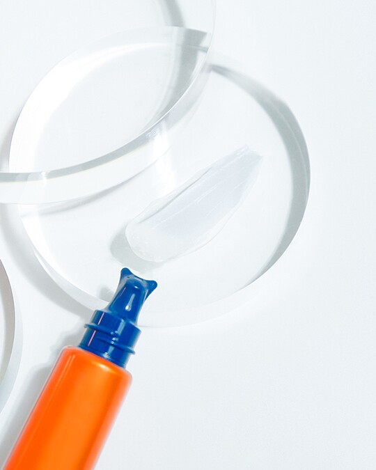 1. 以瓶口壓頭直接瞄準皺紋,把精華霜塗抹上肌膚。基本一個肌膚部位約使用「兩粒米大小」的量(也可因狀況增加使用量,例如大範圍的額頭或頸部)。