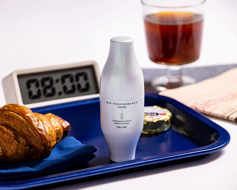 「資生堂日夜分子玻尿酸精華」即將此概念帶入抗老保養中,推出「 無針填充玻尿酸 」晚上睡前使用第一劑(藍瓶),運用獨家科技縮小玻尿酸分子體積,讓玻尿酸更快速進入肌膚,早上起床使用第二劑(白瓶),將夜晚的玻尿酸重塑膨脹,兩天一夜下來,肌膚能感受到年輕澎潤。