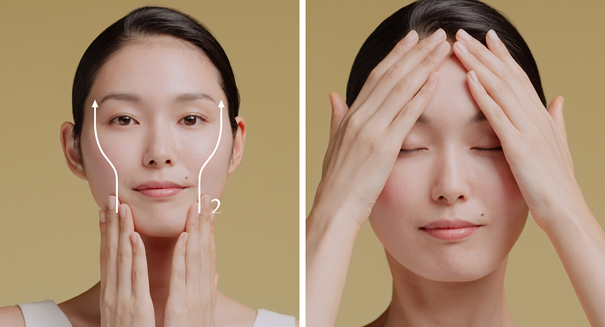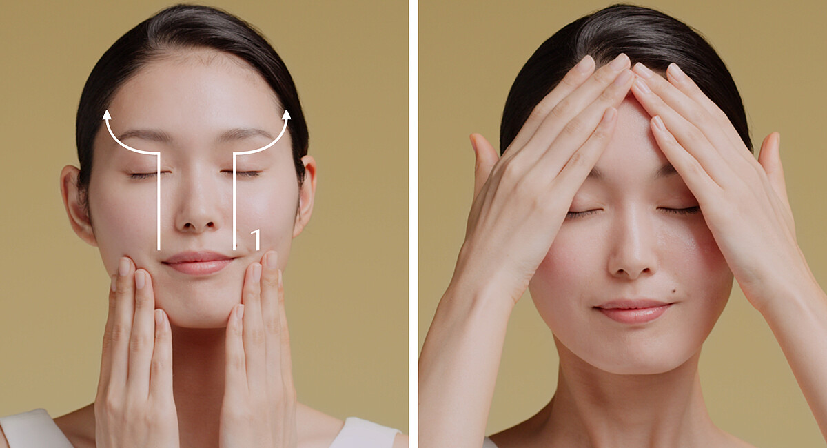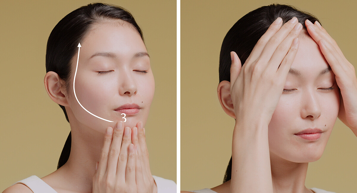可重複此三步驟,以V字手法輕柔向上按摩全臉,讓#4D精華被每一寸肌膚完整吸收。這個宛如肌膚V型健身操的按摩方式,能使#4D精華更快速顯著地發揮出來,為你擺脫鬆垮危機、優雅自然地保持年輕美麗。