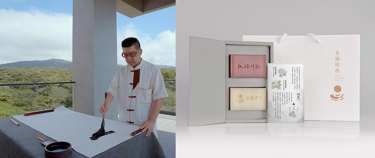 知名書法家呂國祈在「北海明珠」開幕日特地前來現場揮毫,為這座美麗建築更添人文氣質。開幕當天所有賓客的伴手禮,是阿原今年年初推出極熱賣的「阿原龍年攏好運禮盒」,與開幕特製「艾在北海禮盒」!為壓印「北海明珠」皂章的艾草玫瑰、艾草茉莉兩款特製皂,與現場所有嘉賓共享開幕喜氣,同時更是最佳修護淨化的貼心伴手禮。