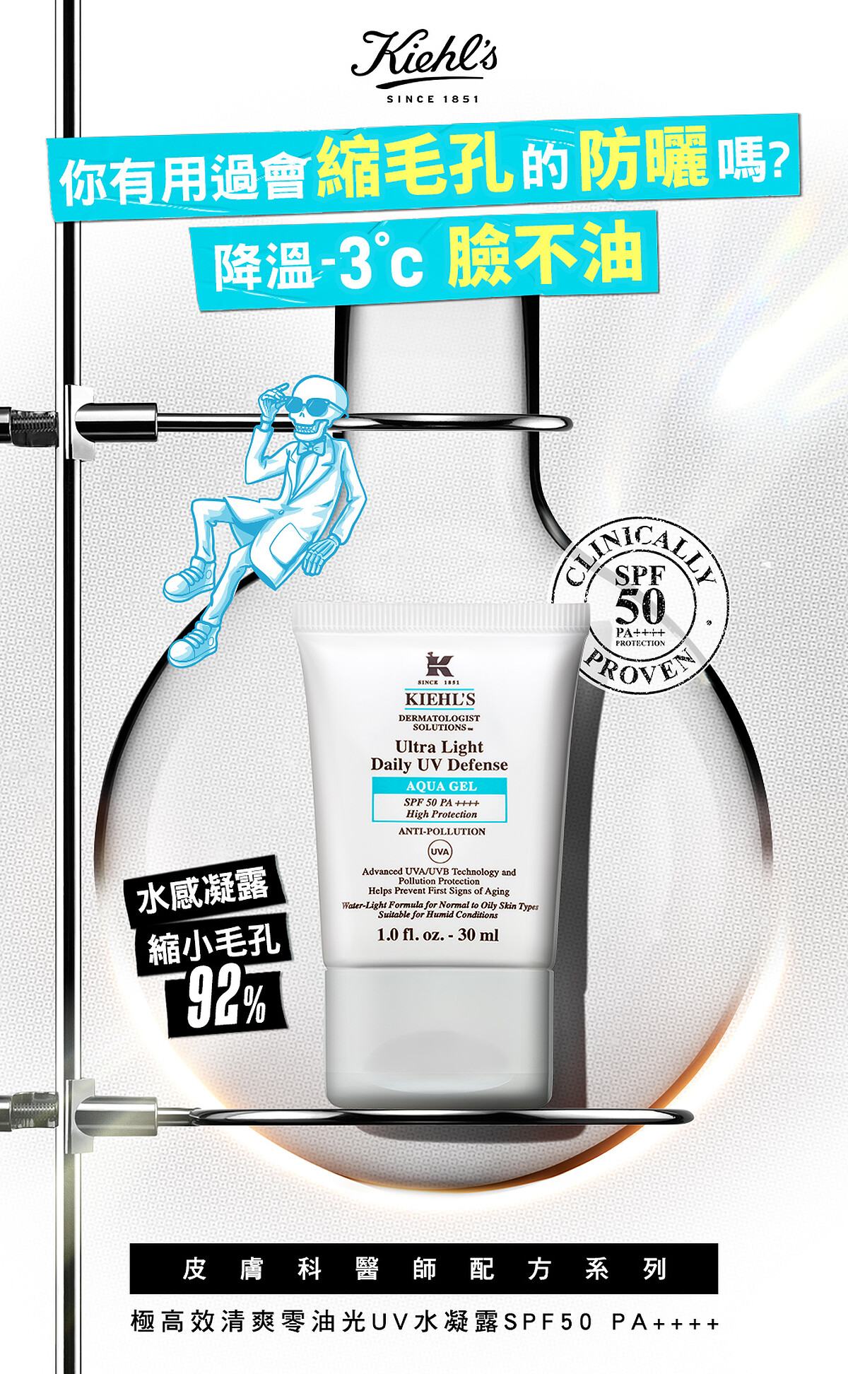 即日起到8/31,只要上網填寫資料,並到全台Kiehl’s契爾氏櫃台體驗【夏日沁涼縮毛孔30秒實測】不只可以完整體驗NO.1專利三合一抗老A醇精華 跟 NO.1縮毛孔降溫-3°C UV水凝露,也能帶回獨家體驗兩件組喔!快到契爾氏找回澎彈感,今夏一契年輕5歲!