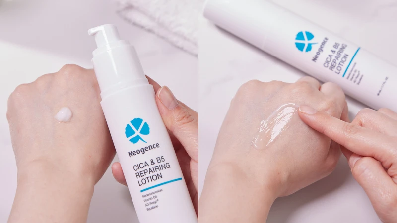 如果是混合偏油肌、大油皮,推薦清爽好吸收的「積雪草B5舒敏修護凝乳」。水乳狀質地,延展性好又親膚好吸收,添加100%植萃角鯊烷,深入滲透修護屏障,一抹肌膚保濕滋潤,有效改善乾燥,還能緊鎖肌膚水分不流失。