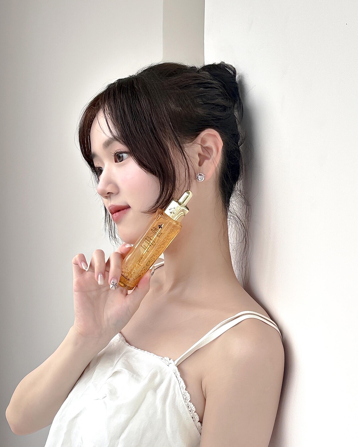 無辜放電、熱愛跳舞,然後肌膚好到吹彈可破,簡直會被迷的不要不要~最愛bling bling的好肌膚,「每次看到小金瓶黃金微粒營養咻咻咻被吸收,都有種療癒感!」姳亘這樣說…難怪是堪稱爛皮救星的青春精華液!
