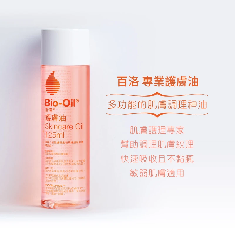 日曬後肌膚的不均色澤與老化痕跡,換季肌膚常見的乾燥缺水及敏感不適問題,以及令身體肌膚顯得「不夠完美」的粗糙黯沉…誕生自專業實驗室的「Bio-Oil百洛專業護膚油」中的獨家關鍵成分──通過德國皮膚科測試 、精準調配的獨家礦物質基底油「PurCellin OilTM沛希靈」,賦予這瓶護膚油無可比擬的水潤保濕不黏膩質感,好讓肌膚輕鬆享有油保養帶來的柔潤亮澤呵護,卻不感覺厚重負擔,徹地顛覆過去油保養給人的疑慮,一抹急速吸收養分到肌膚底層,雖然是油的質地,但肌膚表層卻清爽不黏膩,讓你因為百洛,徹底愛上護膚油~