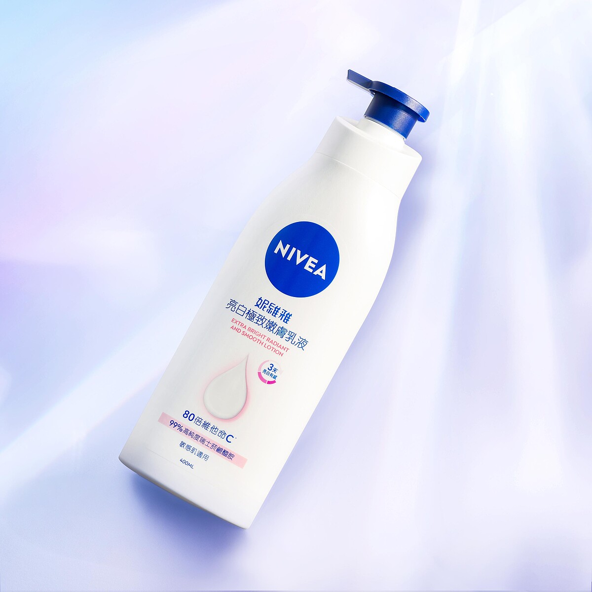 連續8年銷售No.1#的妮維雅亮白極致嫩膚乳液,一直以優秀的美白效果稱霸台灣身體乳液,為了讓消費者更快速有感,妮維雅德國百年科學護膚研發中心直接超狂的添加頂奢美白成分 99%高純度菸鹼醯胺(維他命B3),有效幫助肌膚色差與暗沉改善,修護肌膚屏障,重現肌裡輕透健康的亮澤感;此外,萃取自西印度櫻桃的維他命C成分,濃度更從50倍大手筆提升至80倍*,讓膚色均勻明亮更有感,菸鹼醯胺+維他命C的搭配不只讓提亮功效更加乘,3天^校色有感,展現如霓光般的夢幻肌膚,以美妝編輯的專業領域來說,勝出關鍵絕對透過最簡單、有感、溫和成分賦予肌膚有效的滋潤亮澤,被網友推崇的原因則是肉眼看得到膚況的改變,亮白明顯落差,夏天用不悶厚、超清爽!在社群媒體上輸入關鍵字NIVEA就能發現大家狂推「亮白極致嫩膚乳液」是2024女孩們必收的寶藏級好物!