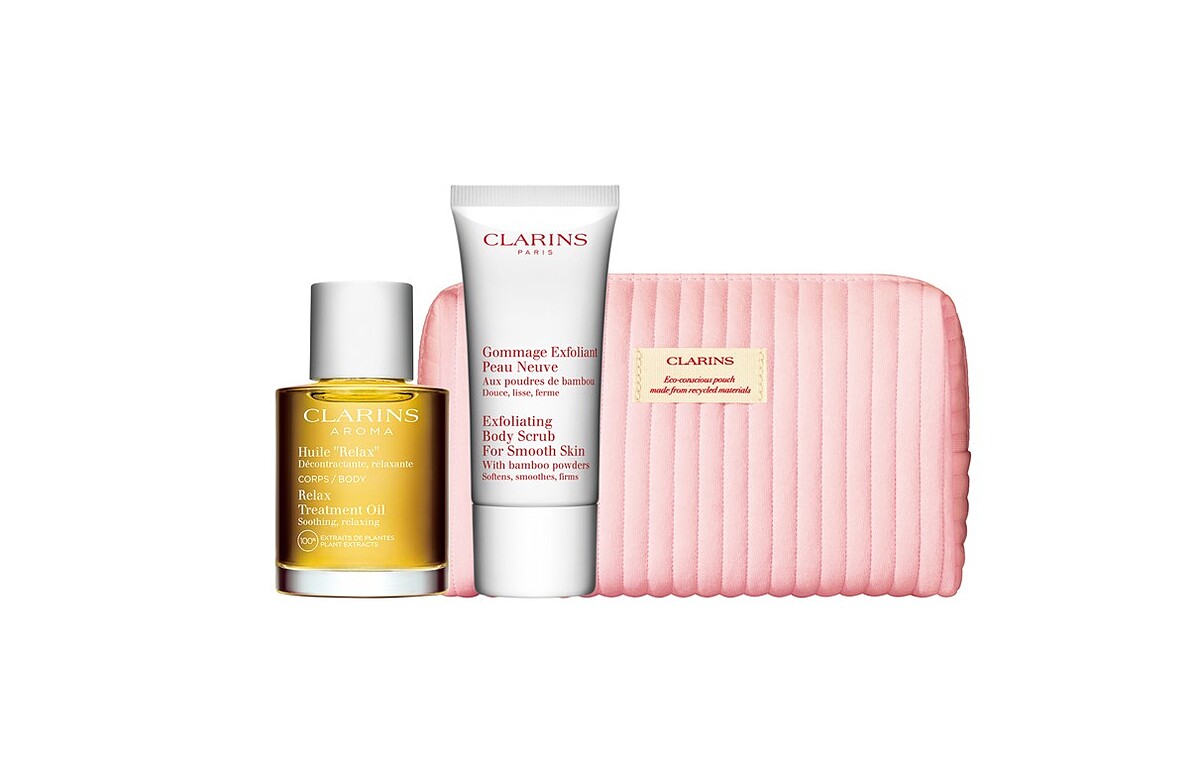 ● 「金萃會員」預購會任一消費,即贈美體放鬆保養組(價值NT$1,313)。包含身體舒爽護理油30ml、竹子精華身體去角質霜30ml、櫻花嫩粉方形化妝包