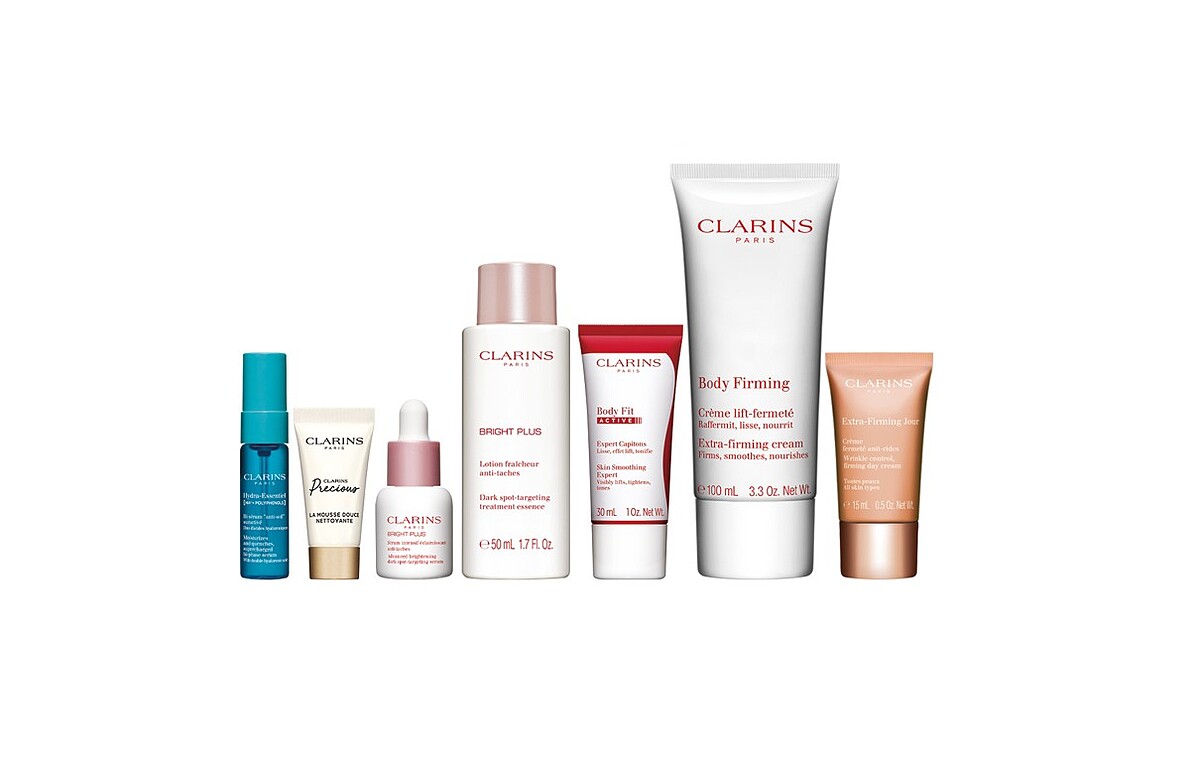 ● 單筆消費滿NT$12,000,即贈美體緊實組乙組(價值NT$4,968)。內容包含新一代水潤奇肌保濕精華10ml、氧氣亮白淡斑精華7ml、氧氣亮白淡斑精華水(清爽)50ml、升級版紅魔S勻體精華30ml、緊實身體乳100ml、煥顏緊緻彈力日霜15ml、至臻凝時月神花顏潔乳8ml