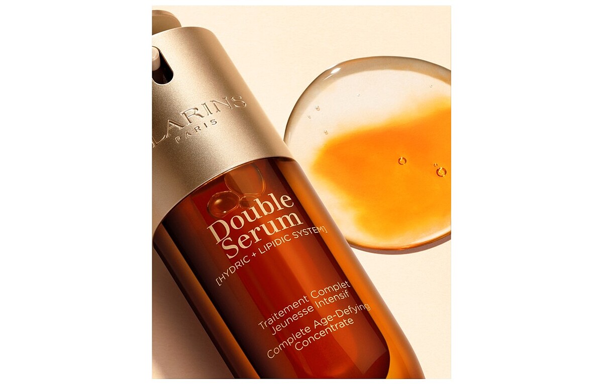今年克蘭詩志在推出全新抗老鉅作,把「黃金雙萃精華」全面再升級,直接挑戰業界天花板,偕同年輕雙源力──「傳奇植萃+科研護膚」,推出品牌第一瓶「植物性A醇」的抗老精華,添加植物界抗老明星「哈倫加納葉」,實證擁有與A醇相媲美的卓越功效,同時結合「膠原雙胜肽」的超強膠原激活力,能迅速改善疲態紋、累老臉、暗沉肌!
