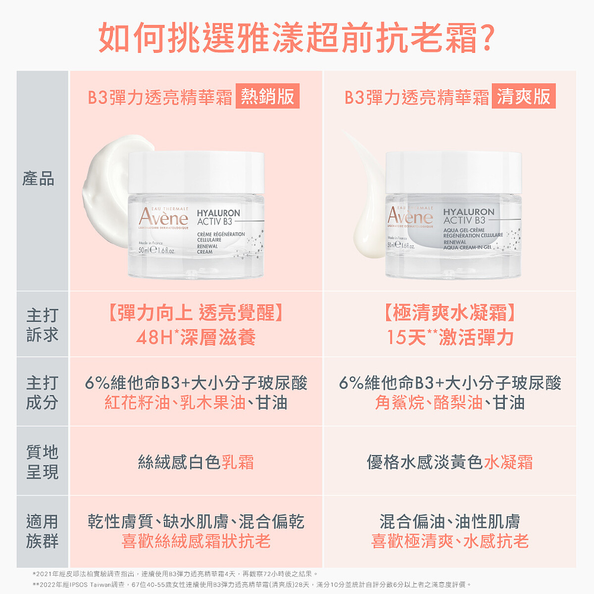 雅漾超前抗老霜”熱銷版” vs “清爽版” 如何挑選?推薦適合肌膚?表格一次看