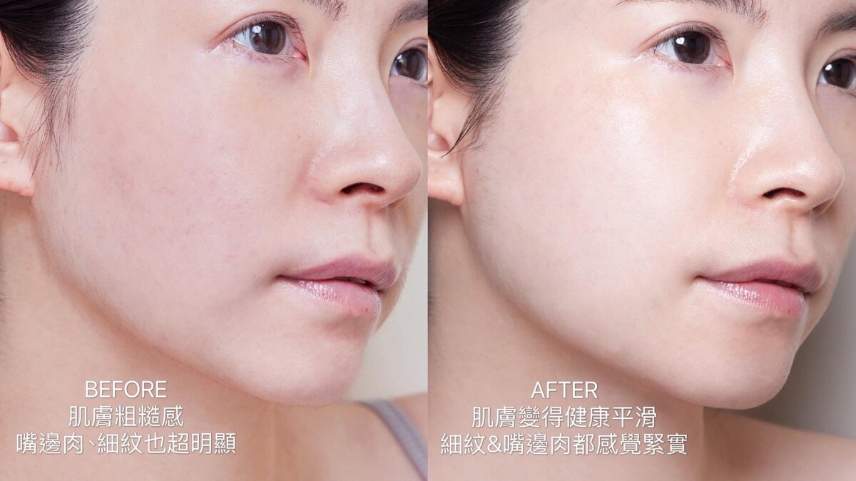 BA對比真的超明顯,細紋淡化,還有討厭的乾燥粗糙感也有解,膚況變健康細緻,臉的亮彈感非常明顯,讓M編擁有灑花跳躍轉圈圈的那種快樂~