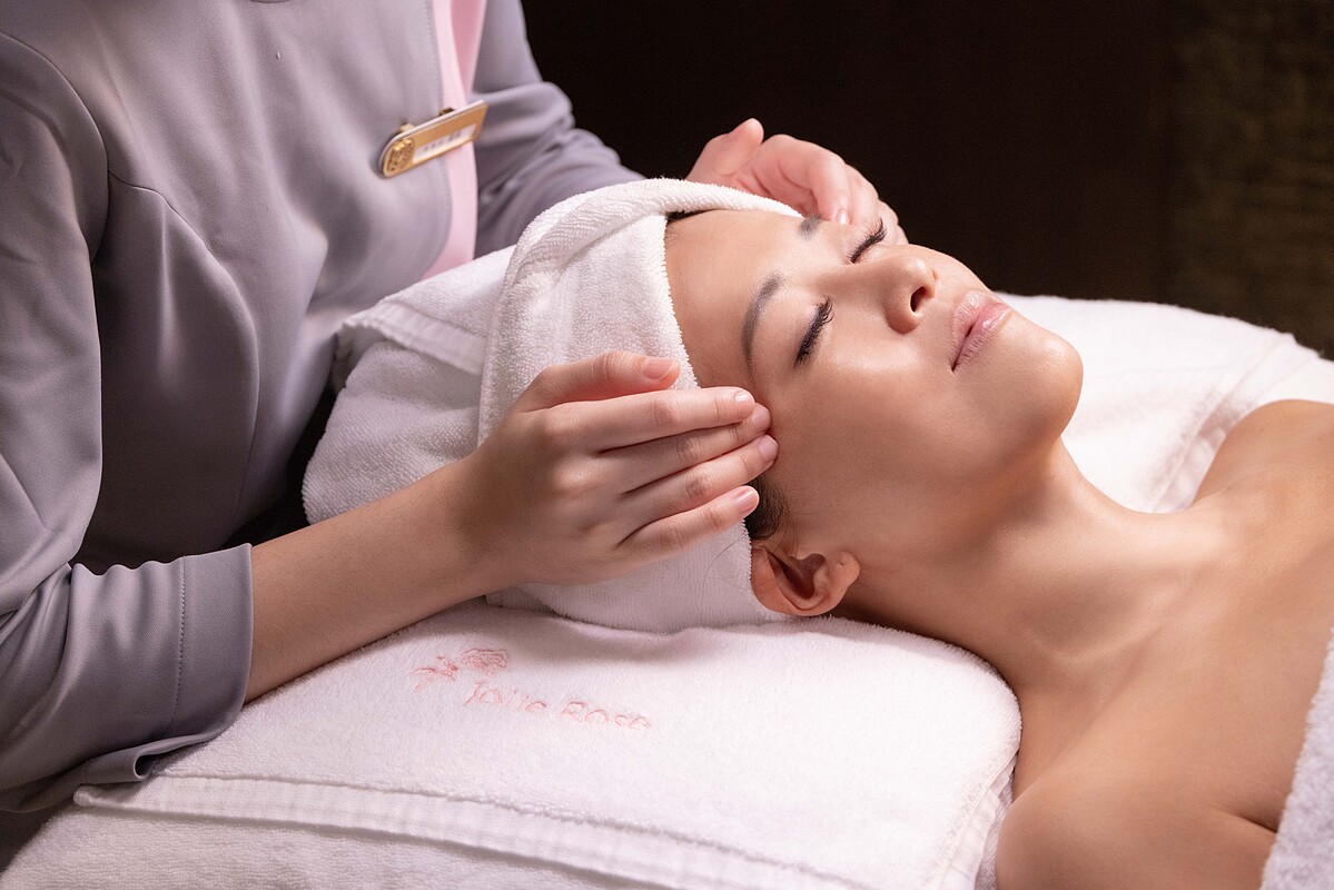 在90分鐘的「雙金奢萃花嬉玫瑰抗老課程」中,她的臉部,頭部,肩頸,前胸,手部五大區域肌膚都被好好地照顧到了,運用:氛、潔、淨、金、揉、養、蘊、亮、護、癒等十道精緻法式頂級護膚揉推工序,悉心打造專屬高訂肌。