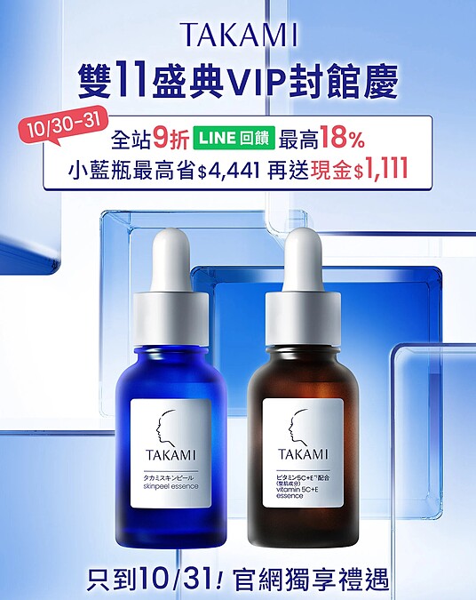 為什麼日本女生皮膚都那麼好?看起來白皙細嫩、還散發透明光澤感!解鎖日妞的好膚質,秘密就在近年風靡日本美妝圈的TAKAMI角質道保養,以創新的保養概念+溫和有效的成分+獨特零摩擦溫度手法,從改善膚質根源下手,重整調理並穩健角質,有感改善敏感問題膚況,自推出後瞬間爆紅,成為日妞唯一指定愛用!今年雙11盛典TAKAMI將全球熱銷突破千萬瓶的明星雙精華《角質道小藍瓶》、《5C+E精華》推出超狂優惠,解鎖透亮無瑕美肌、成為小藍瓶富翁趁現在!
