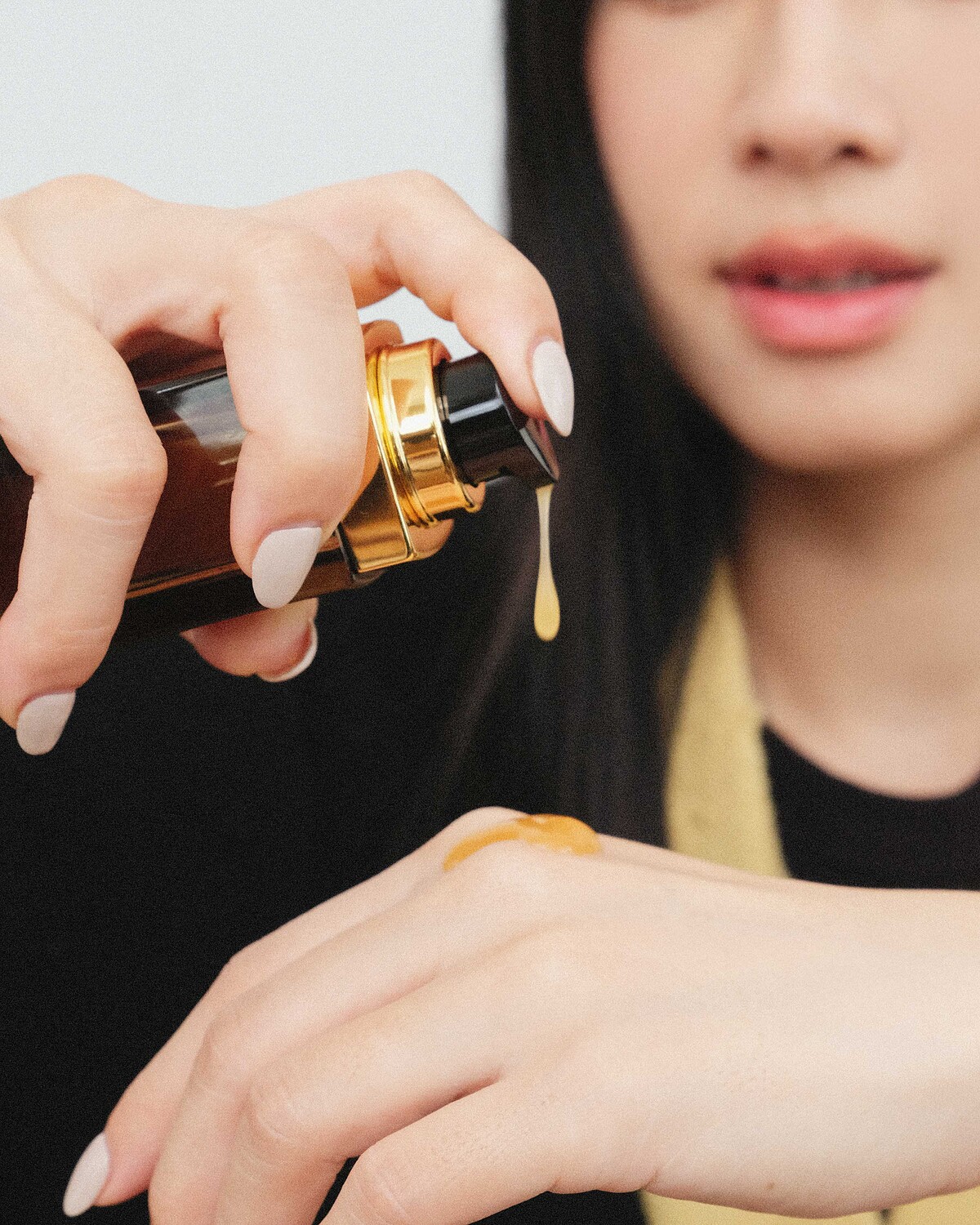 她最近用一段時間就深感:「整體保養效率顯著提升!」讓她印象極好的香奈兒全新「奢華極萃前導精露」,完美油水比例精露質地中,香奈兒更運用尖端微流體科技,讓珍貴喜馬拉雅朱玉雪當藥萃取、五月梵尼蘭精萃包覆於上萬顆微滴粒子中,在接觸肌膚瞬間,微滴粒子瞬間迸發最高奢潤活膚力,給予肌膚既豐盈且清爽的平衡舒適感,肌膚的疲態暗沉與瑕疵也瞬間一掃而空,準備好迎接後續香奈兒奢華極萃保養之旅!