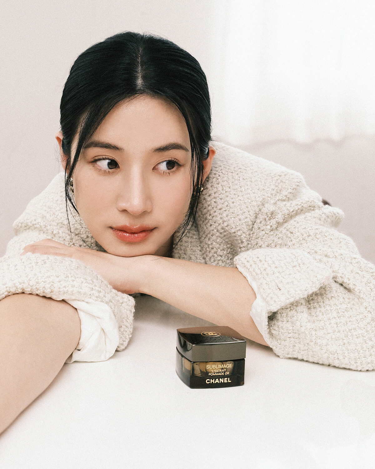 開始接受工作邀約的趙岱新,因為媽媽這角色的「訓練」,讓現在的她很擅長使用能快速提亮肌膚的保養或上妝方式,使肌膚迅速回到自帶高光的「上鏡狀態」!像是用於上妝前,帶給肌膚保養、修飾、打亮效果的「香奈兒奢華極萃肽金煥顏霜」,正是讓她從第一次用就無比驚艷,「豐富的頂級保養能量與細緻自然的亮膚效果,使素顏臉龐彷彿剛做完頂級保養儀式,氣色好到自己都忍不住一直照鏡子~」