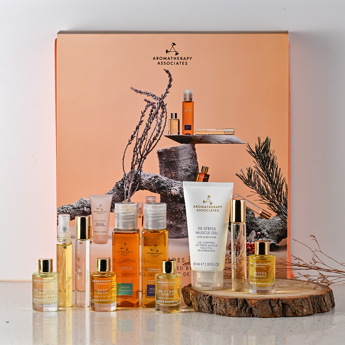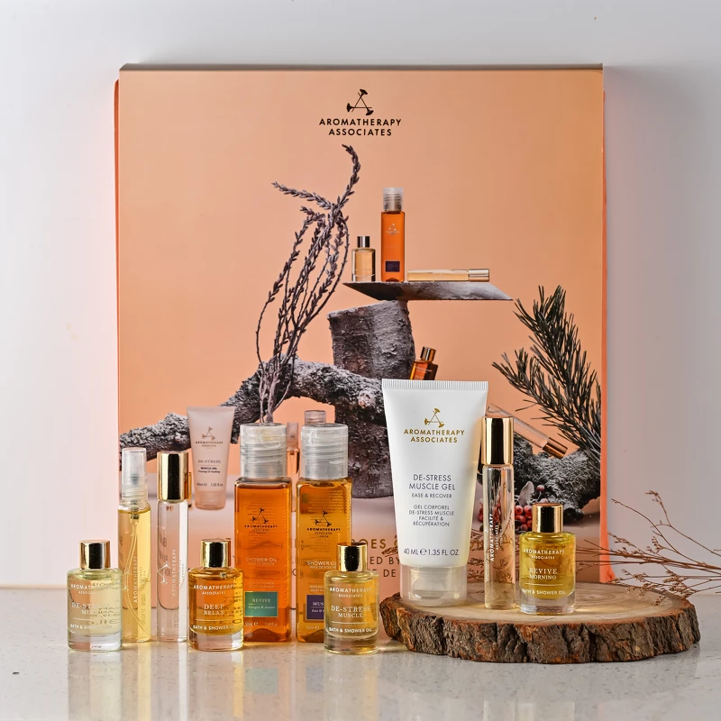 除了沐浴油外,這組集合了AA的其他人氣商品,包含像是舒緩噴霧、沐浴露、凝膠和滾珠香氛等。