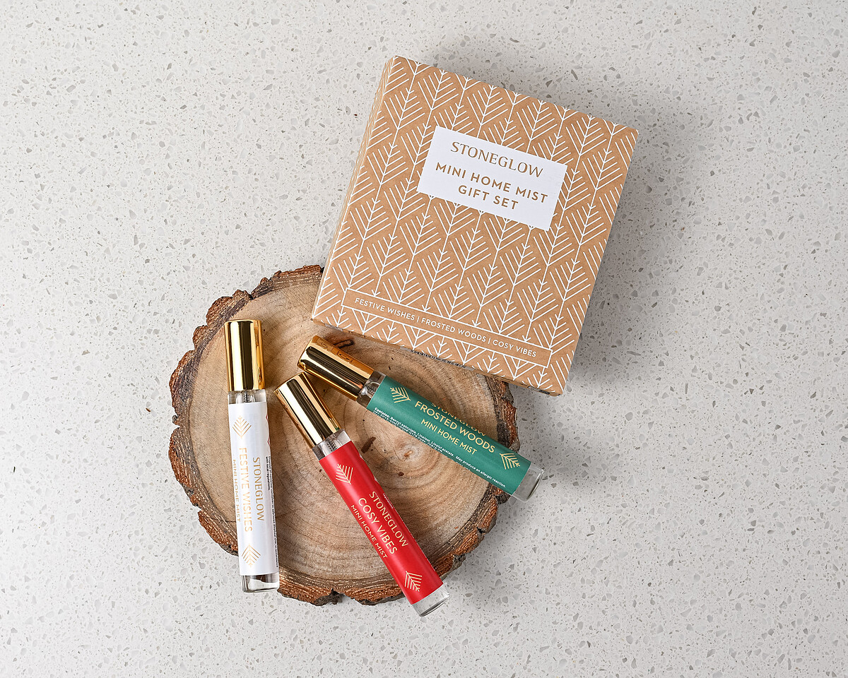 除了香氛蠟燭外,STONEGLOW也有推出擴香和空間噴霧的組合,如果想加強氣息的,也可以挑選擴香和香氛燭的禮盒;衣物、織品上也有適合的空間噴霧,同樣有推出可以三款香氣一次擁有的迷你禮盒。