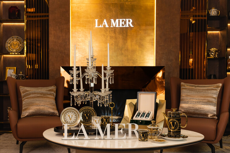 獻上精緻茶點美饌的凡賽斯Versace精品瓷器、居禮名品家居,更讓貴賓們從貼身使用的每個用品細節,倍感La Mer尊寵待客心意,讓這場護膚療程之旅不僅極致珍寵肌膚,更是一場滿足全方位感官饗宴的美學藝術旅程。