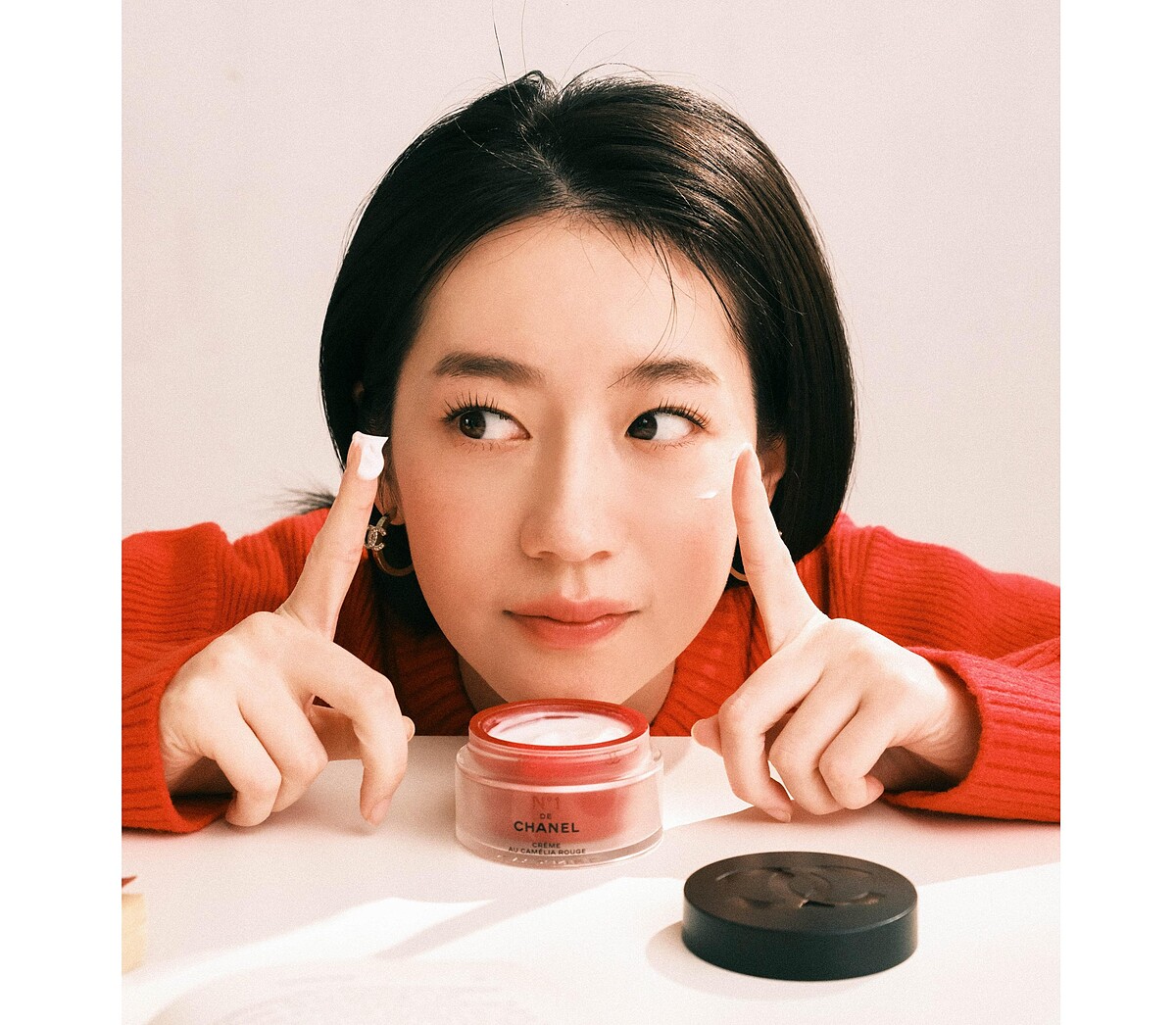 接著使用2025全新「香奈兒1號紅色山茶花活能凝霜」,清爽凝霜質地中蘊含紅色山茶花的長壽能量,以及提升肌膚對外防護力的山茶花神經醯胺、胜肽複合物,幫助肌膚隨時保有美好的彈性與迎戰外在環境的強韌,呈現令人激賞的柔嫩透亮與青春美好。