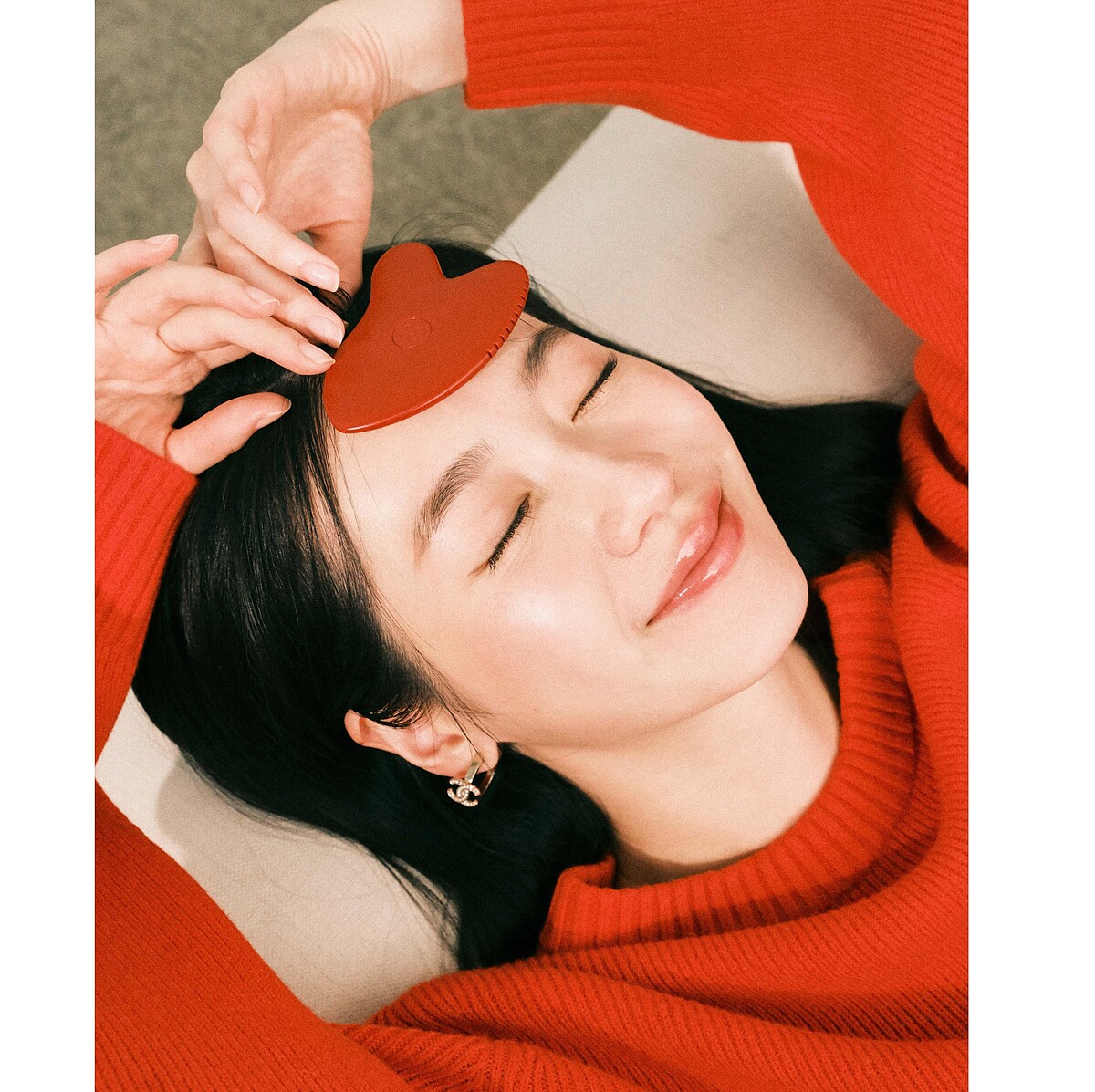 塗擦活能凝霜時搭配以超過85%環保材質製成,香奈兒針對毛孔、彈性、紋路與光澤四大面向所研發的全新「香奈兒1號紅色山茶花活能按摩板」,讓活能按摩板借助凝霜的柔滑質地,給予肌膚超乎想像的加乘保養力。每一次往返滑動,肌膚將更有彈性、更光滑、更透亮,使美肌詩篇更璀璨!