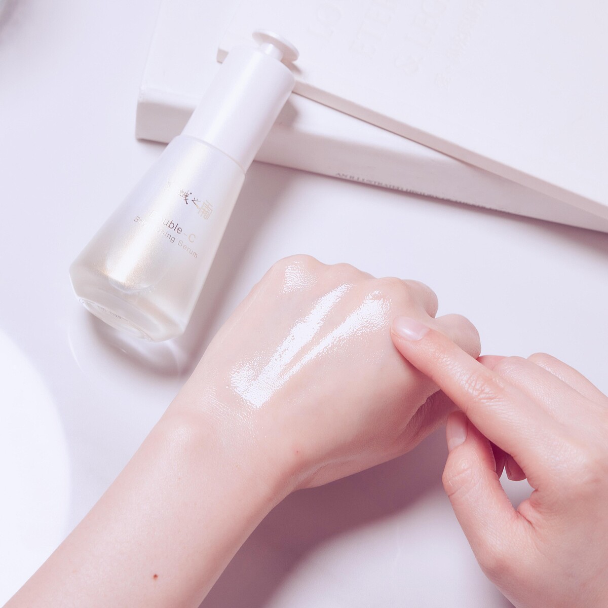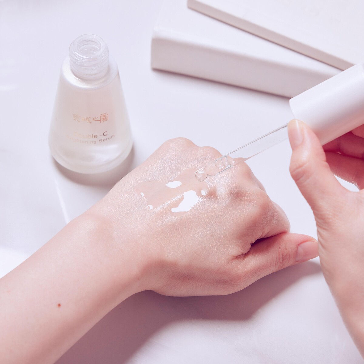 先擦上雙C精華進行深度美白,後續搭配維A精華來緊緻和換膚,幫助肌膚持續24小時換膚美白不間斷,不只讓美白保養事半功倍,還讓膚質再攀新顛峰, 變亮、變細、變年輕,真的看得見!